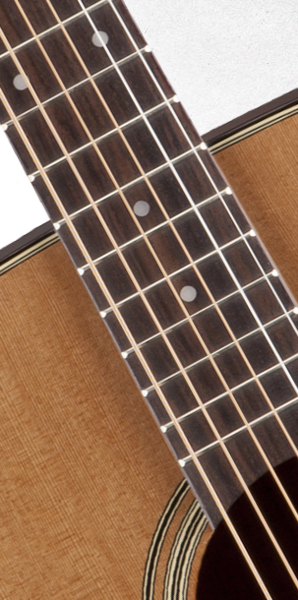 Гриф гитары выполнен из махагони, накладка из палисандра с перламутровой инкрустацией, порожки из натуральной кости, позволяющие детализировать интонации вашей игры.