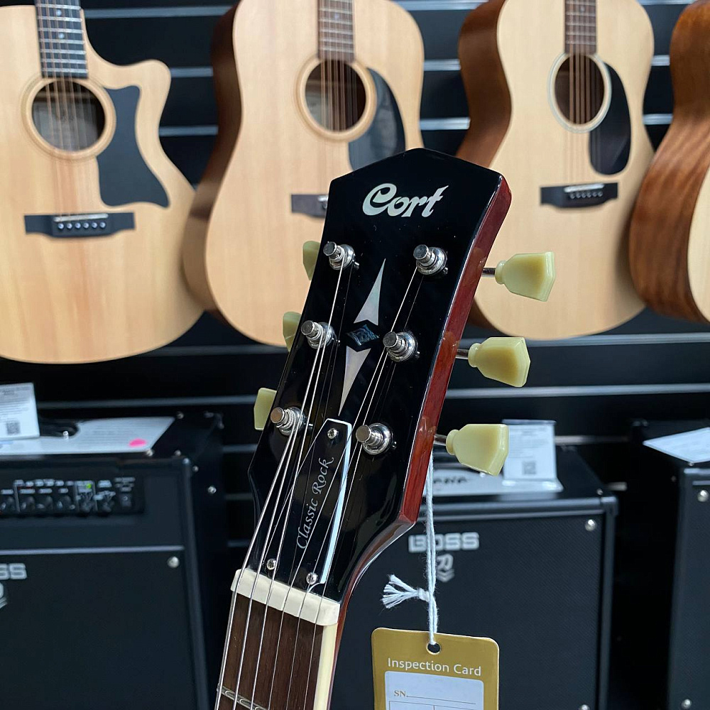 Электрогитара Cort CR250-ATA Classic Rock — модель Les Paul с улучшенной конструкцией. Янтарная отделка, вклеенный гриф из махагони для сфокусированного звука и сустейна. Звукосниматели Classicrocker II, бридж Tune-O-Matic, порожек Graph Tech Nubone.