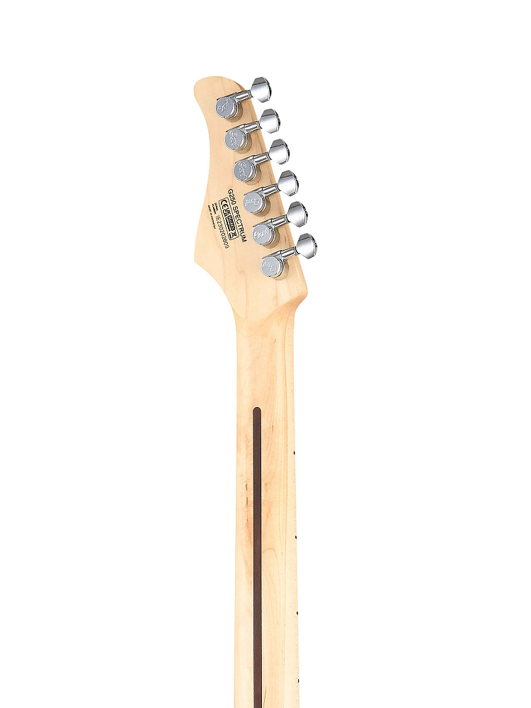 G250 Spectrum разработана для гитаристов, которые ищут простую, стильную гитару в ретро-стиле и ярких цветах, в которой используются важные усовершенствованные компоненты, чтобы сделать игру очень удобной и приятной. Красочная сверкающая металлическая отделка с соответствующей головкой грифа навевает ностальгию по эпохе ретро модерна, когда музыкальная сцена была на пике своего яркого гламура. Музыканты нового поколения также оценят его упрощенный дизайн и яркую расцветку.