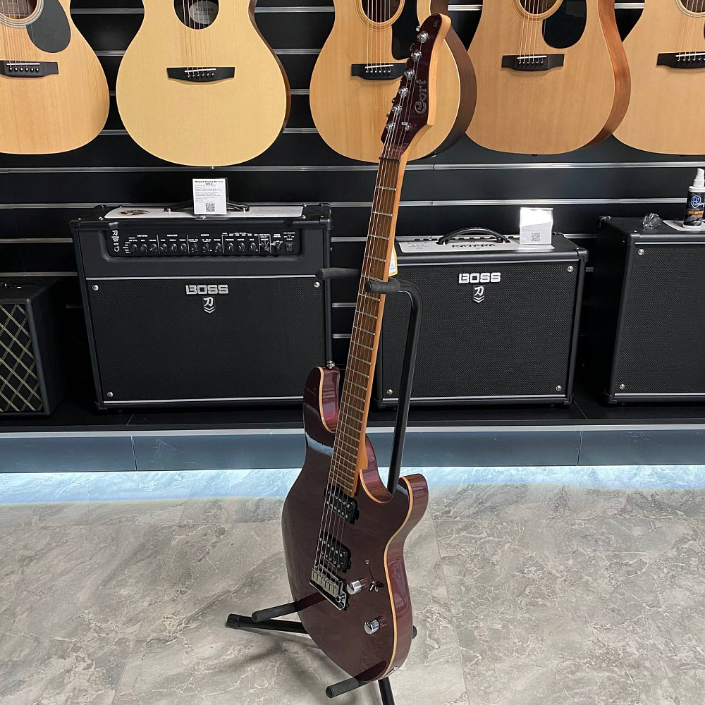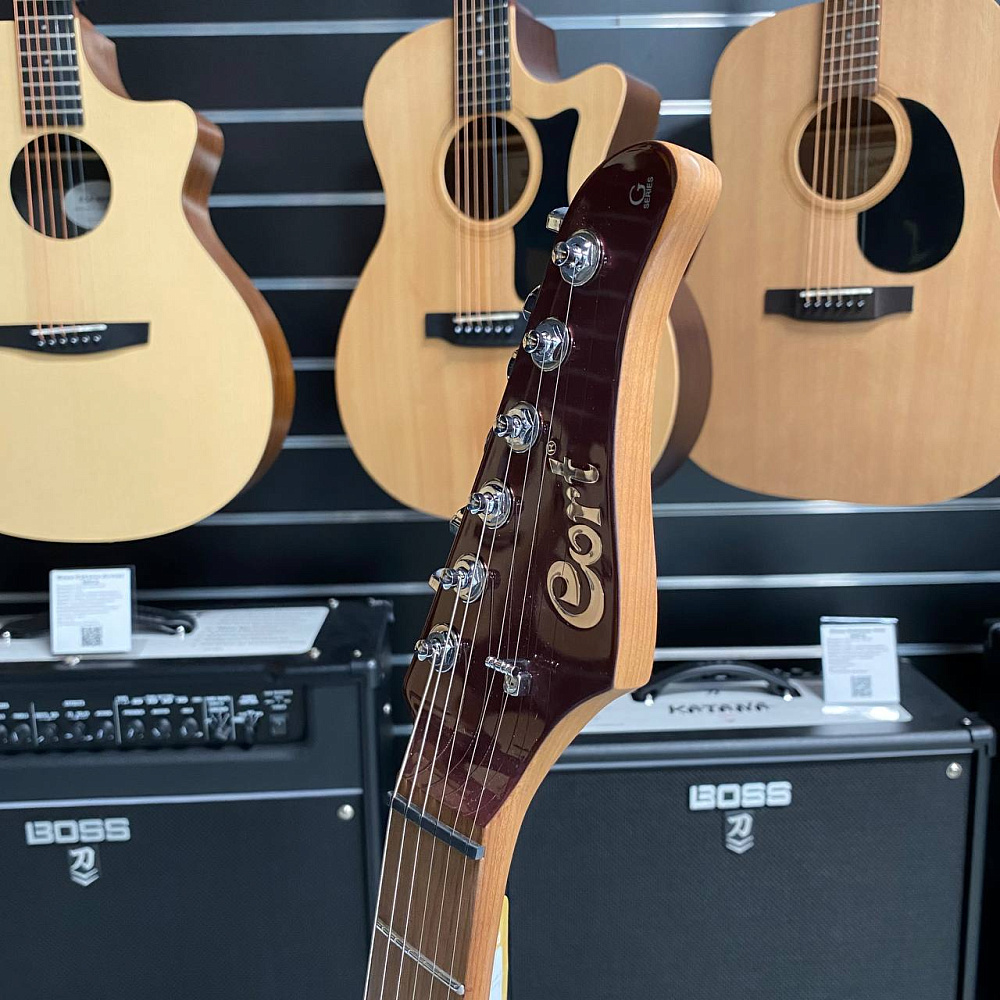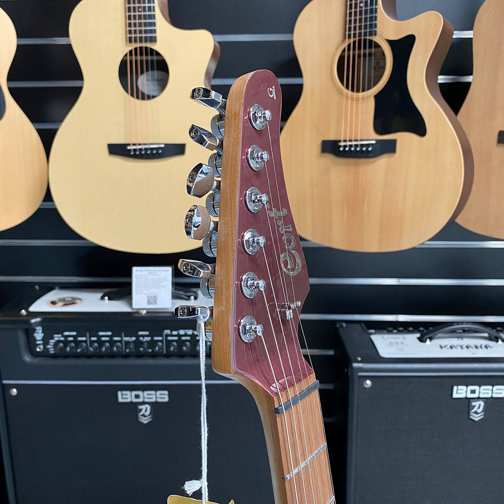 Электрогитара Cort G300-PRO-VVB — бордовая флагманская гитара серии G Superstrat. Корпус из липы с кленовым топом, гриф и накладка из обожжённого клена. Звукосниматели Seymour Duncan SH2N & TB4, 5-позиционная разводка, 24 лада, тремоло Cort CFA-III, метки ладов Luminlay.