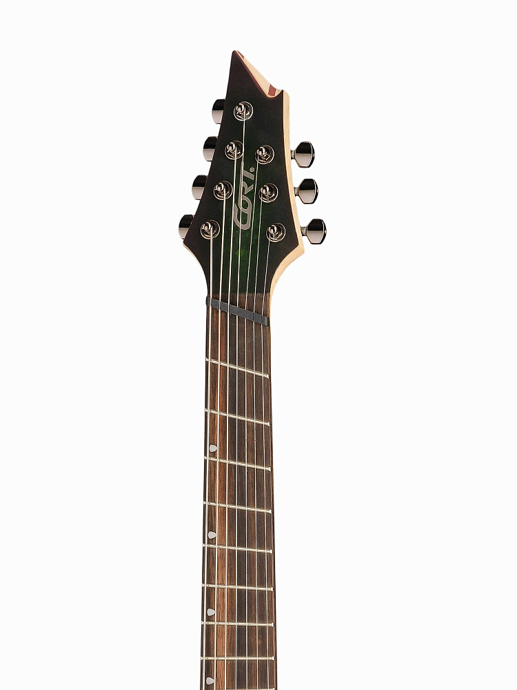 Электрогитара Cort KX507MS-WBAG-SDG — 7-струнная мультимензурная гитара для металла. Мензура 25.5"–27". Звукосниматели Fishman Fluence Modern, корпус из красного дерева с топом из тополя. Фиксированный бридж, гриф из пяти частей клёна и амаранта. Цвет зелёный, чехол в комплекте.