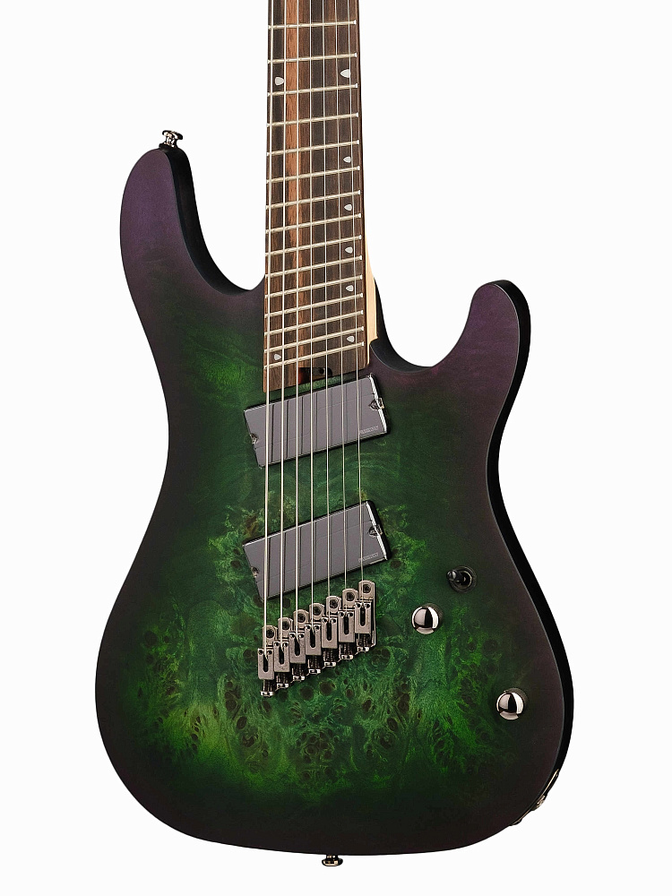 KX500MS, первая в истории мультимензурная гитара, разработанная Cort в 2018 году, была высоко оценена и понравилась экстремальным гитаристам во всем мире. Теперь она возвращается с современными обновлениями и новым именем - KX507 Multi Scale. Этот семиструнный зверь теперь оснащен набором хамбакеров Fishman Fluence Modern Humbucker, что позволяет KX507 Multi Scale глубже исследовать безграничные возможности тонального спектра. Вертикальный лад теперь находится на восьмой позиции, что улучшает играбельность, для большего удобства были перенесены ручки тона и громкости. Корпус гитары изготовлен из красного дерева с завораживающим топом из тополя, гриф из пяти частей клена и амаранта "пурпурное сердце", накладка грифа из черного дерева.