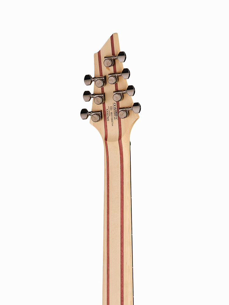 Более плотные и энергичные низкие частоты для струн low-B и low-E с увеличенной длиной мензуры, при сохранении знакомого ощущения и натяжения высоких струн для быстрых соло и бендинга. Вертикальный лад теперь находится на восьмой позиции для более естественного угла раскрытия ладов, обеспечивая лучшую играбельность даже на нижних ладах.