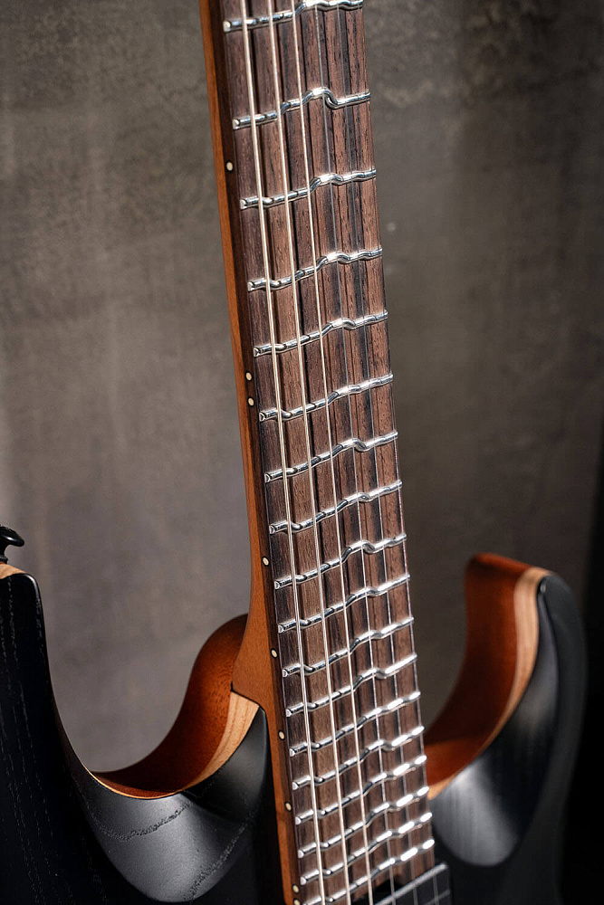 | Материал грифа: | обожженный клен и орех, 5 частей |