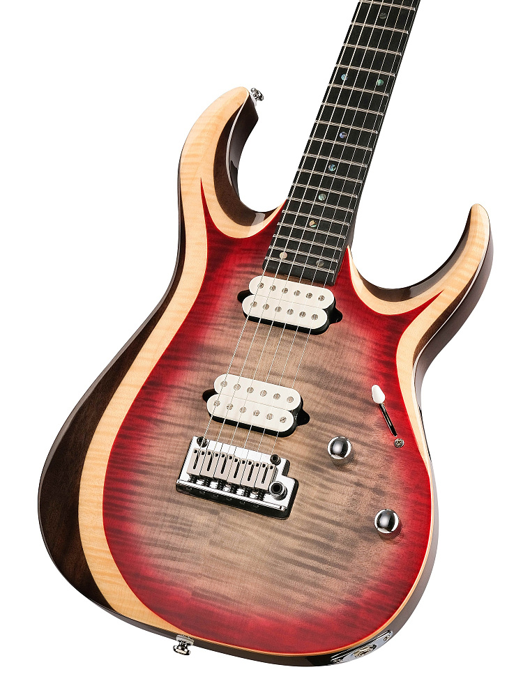 Электрогитара Cort X700-Duality-II-LVB — красная гитара с топом из волнистого клена на красном дереве. Звукосниматели Fishman Fluence Open Core Classic, 5-позиционная разводка с режимом Voice 3. Тремоло Cort CFA-III, гриф из 3 частей клена и панга-панга, лады из нержавеющей стали.
