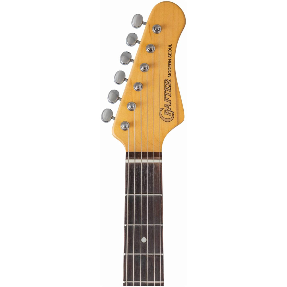 Crafter Modern Seoul – топовая серия электрогитар в корпусе стратокастера. Как и винтажные корейские гитары, эти инструменты сделаны из ольхи. На всех гитарах установлены фирменные локовые колки Crafter, тремоло-бридж Wilkinson и пикгард мятно-зеленого цвета, который устанавливался на старых гитарах Fender. Порожки выполнены из нержавеющей стали.