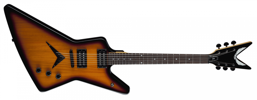 Dean ZX TBZ - электрогитара типа "эксплорер" из серии Z Series.Корпус и топ изготовлены из американской липы. Гриф крепится на болтах, материал изготовления - клен с палисандровой накладкой. На гитаре установлен бридж Tune-O-Matic, колки Die Cast и звукосниматели DMT Design Pickups. Инструмент доступен в двух цветах - черный и натуральный санберст.
