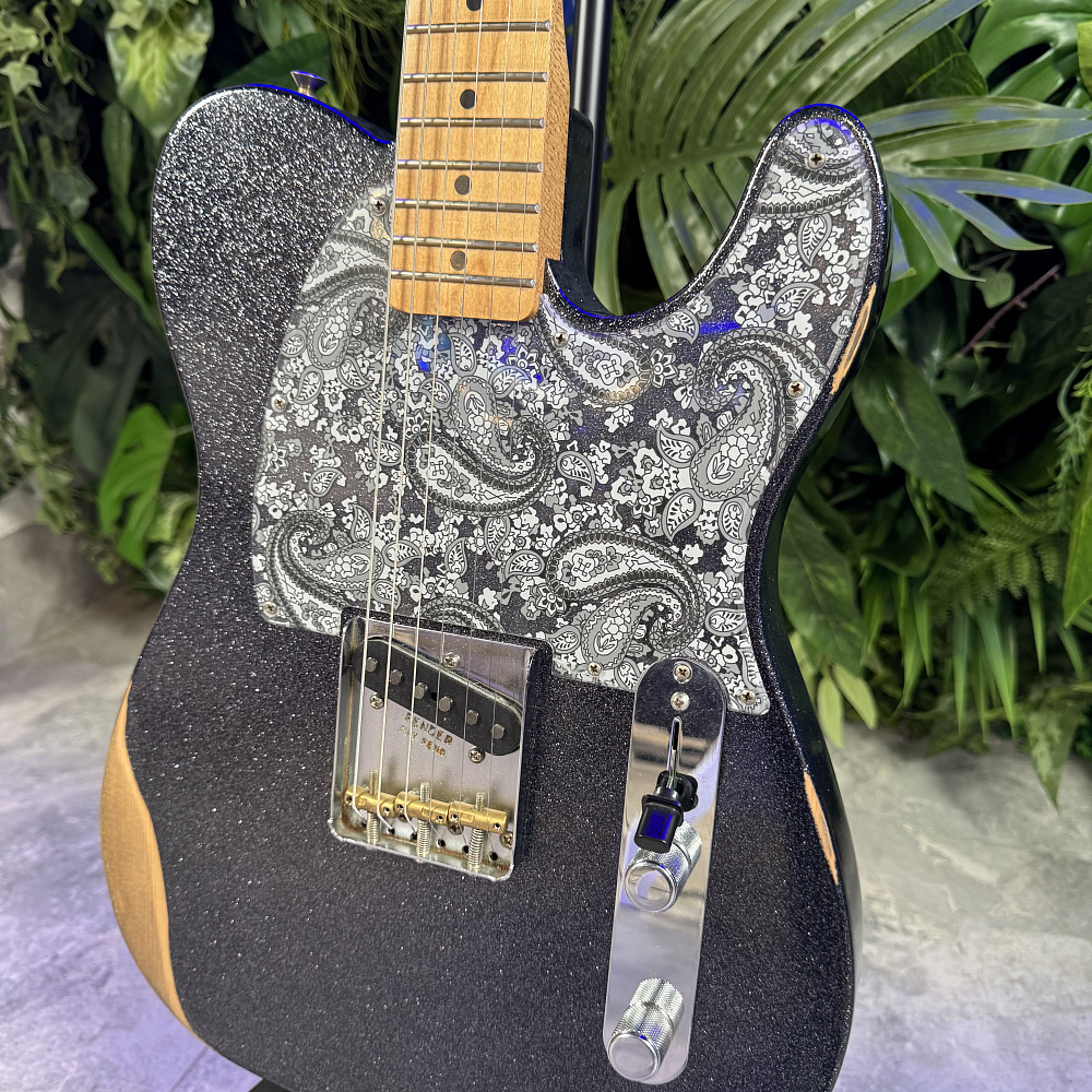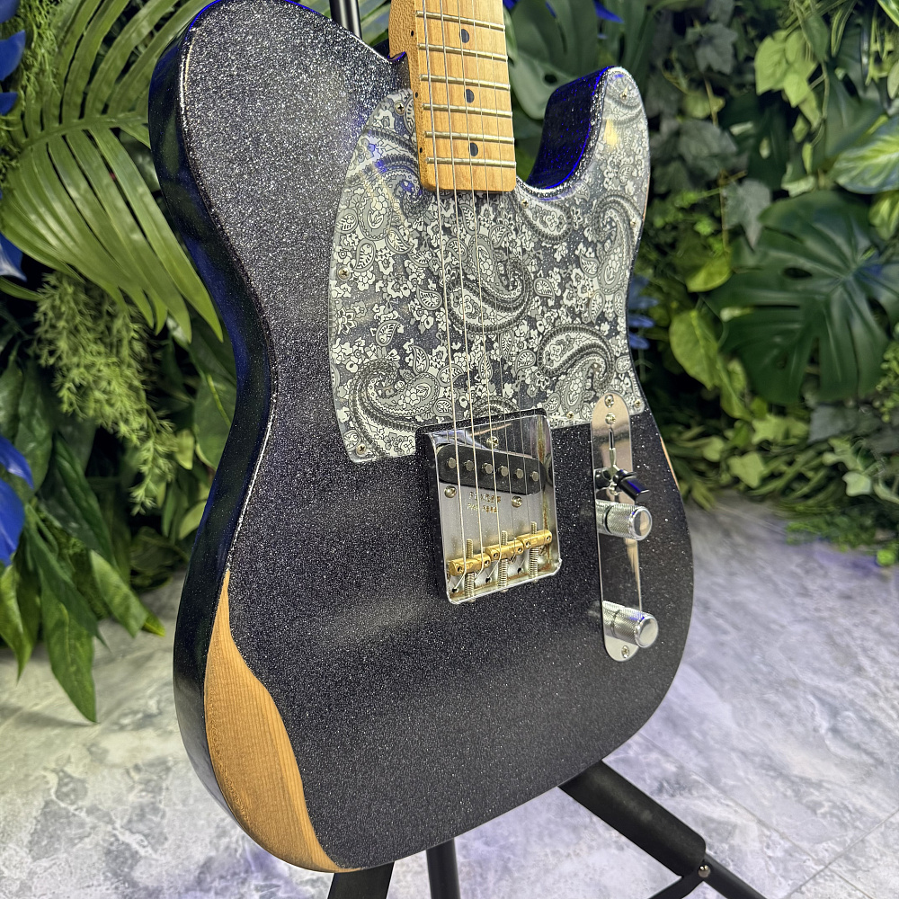 - Винтажная фурнитура Road Worn, включая трёхседельный бридж Tele с сквозным креплением струн и компенсированные латунные седла для бочек