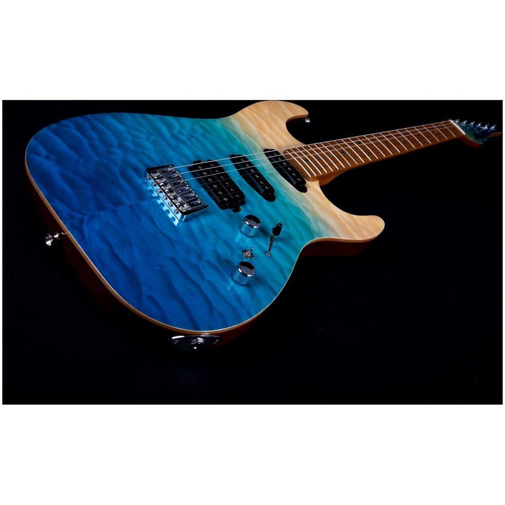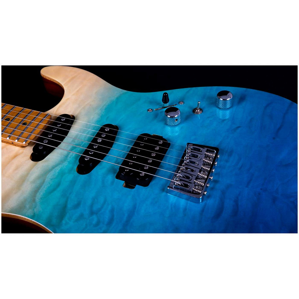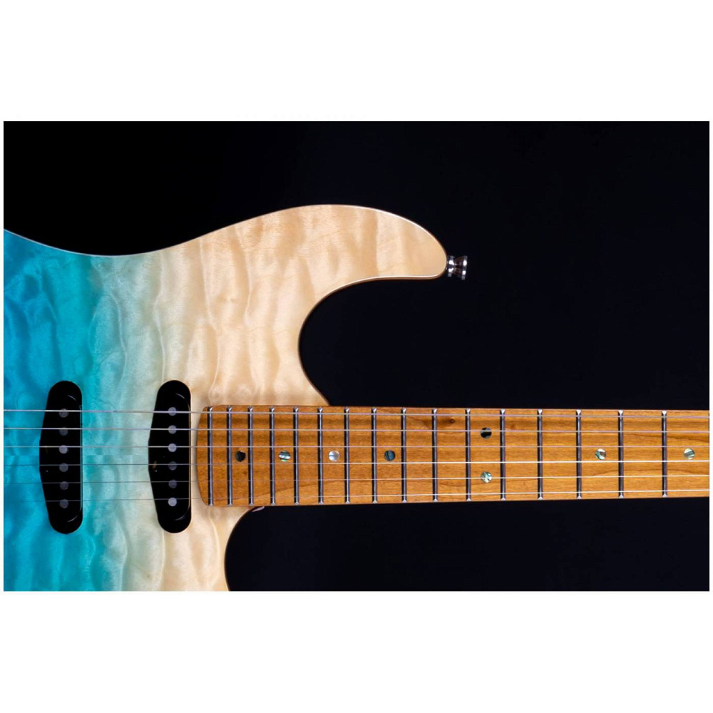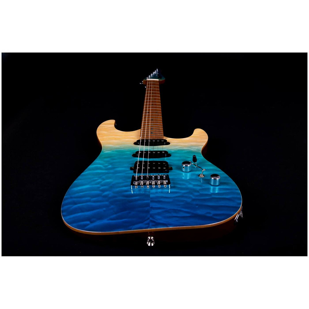 Электрогитара JET JS-1000 QTBL — электрогитара типа Superstrat. Корпус из красного дерева с топом из волнистого клена. Гриф из канадского запеченного клена, 22 лада. Звукосниматели HSS Alnico. Цвет прозрачный голубой (Quilted Transparent Blue).