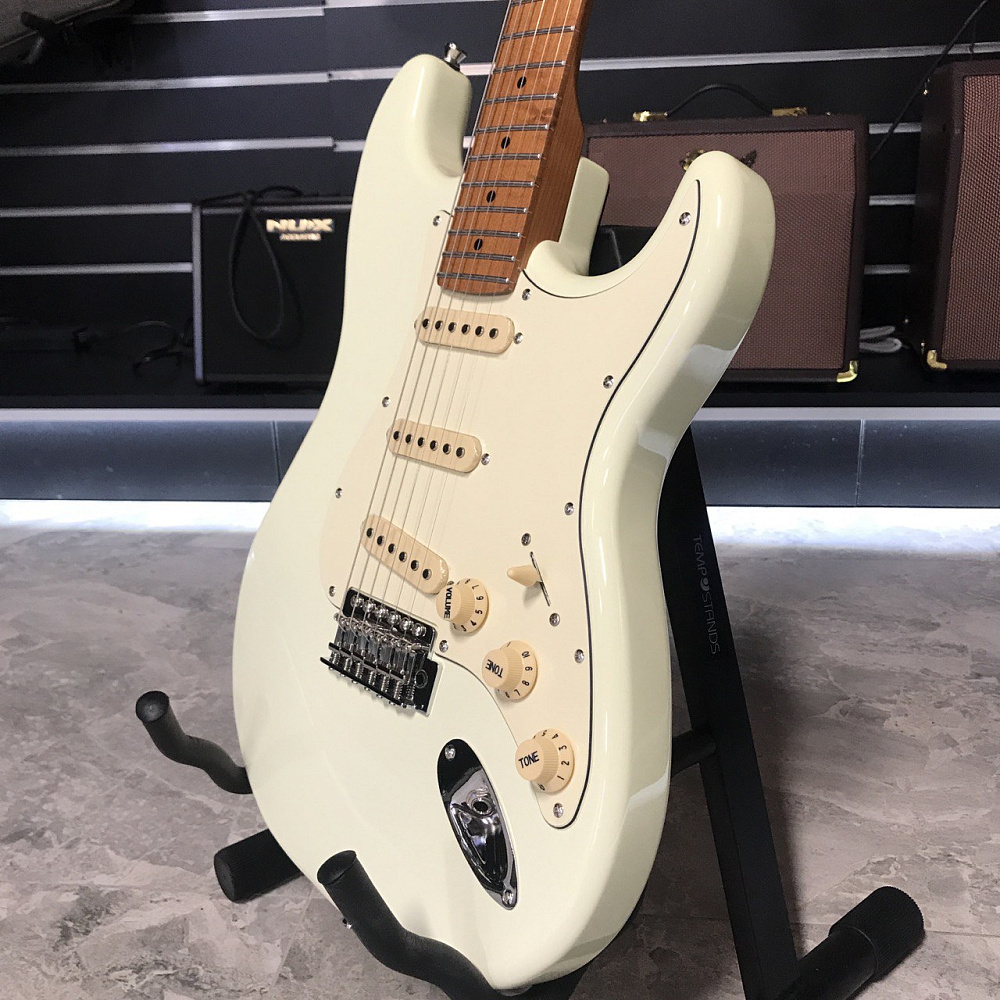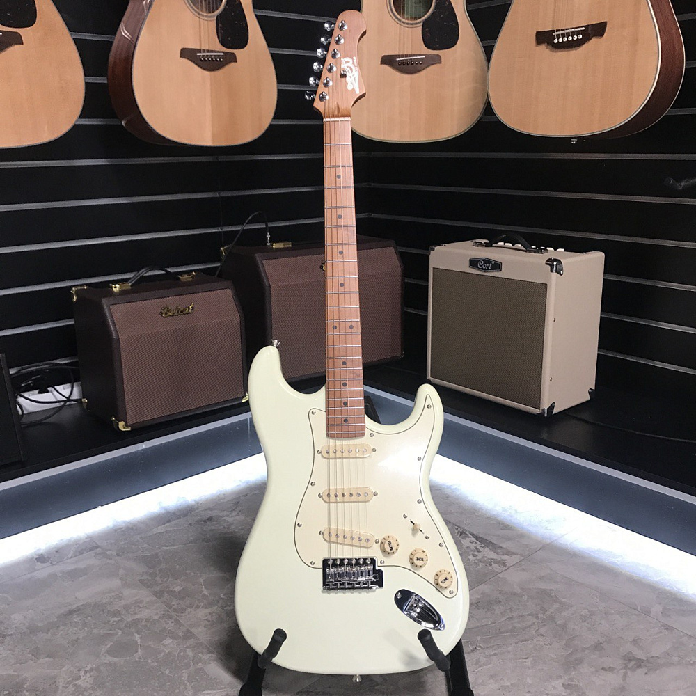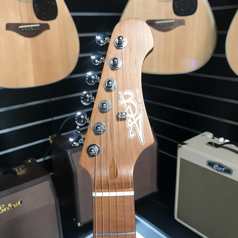 JET JS-200 это инструмент в классической и самой популярной форме корпуса - cтратокастер с конфигурацией звукоснимателей SSS. У инструментов JS-200 профиль грифа - Modern C. Это наиболее распространенный современный профиль грифа, у таких грифов удобный овальный профиль, который подходит для большинства стилей игры.