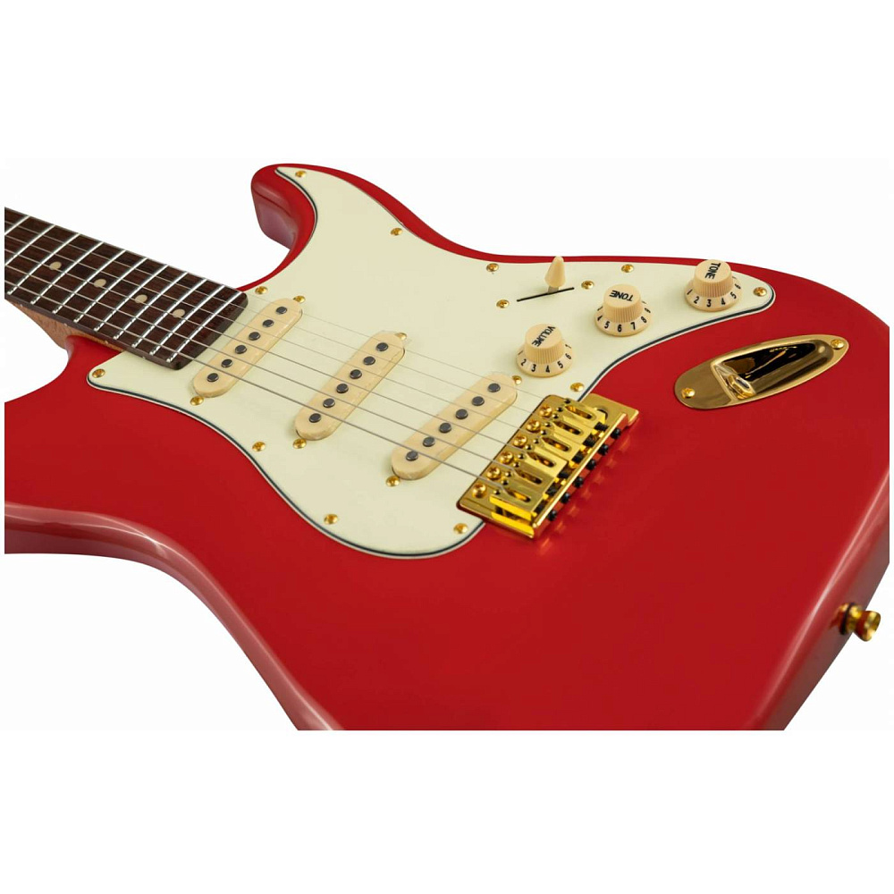 Электрогитара JET JS-380 RD G — электрогитара в форме стратокастер красного цвета. Материалы: запечённый тополь (корпус), печёный клен (гриф), палисандр (накладка). 22 лада, конфигурация звукоснимателей SSS Alnico, тремоло — идеальный выбор для рока и блюза.