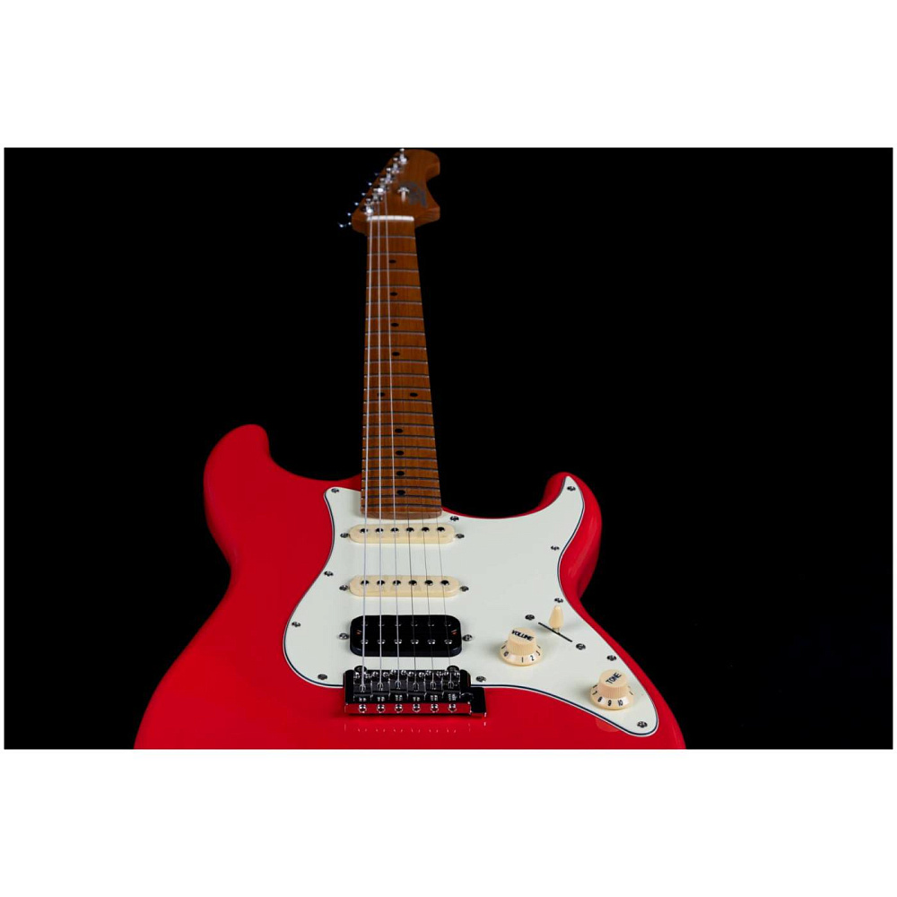 Электрогитара JET JS-400 CRD — электрогитара в форме Super Strat, цвет коралловый красный. Корпус из запеченного тополя, гриф и накладка из печеного клена (roasted maple), профиль Modern C. Конфигурация звукоснимателей HSS, тремоло.