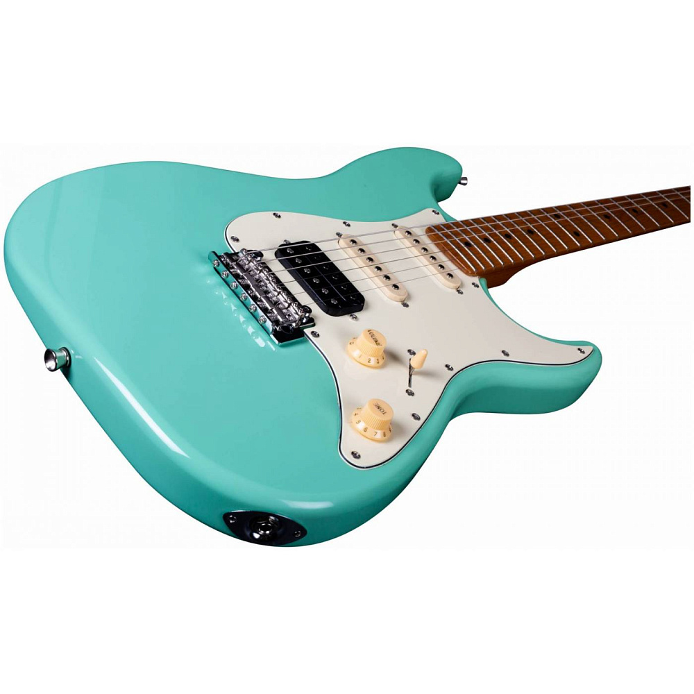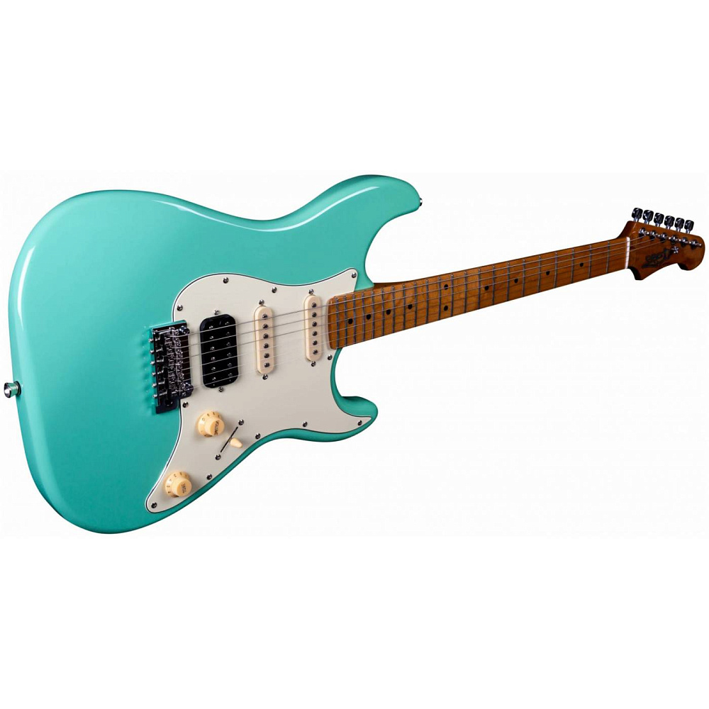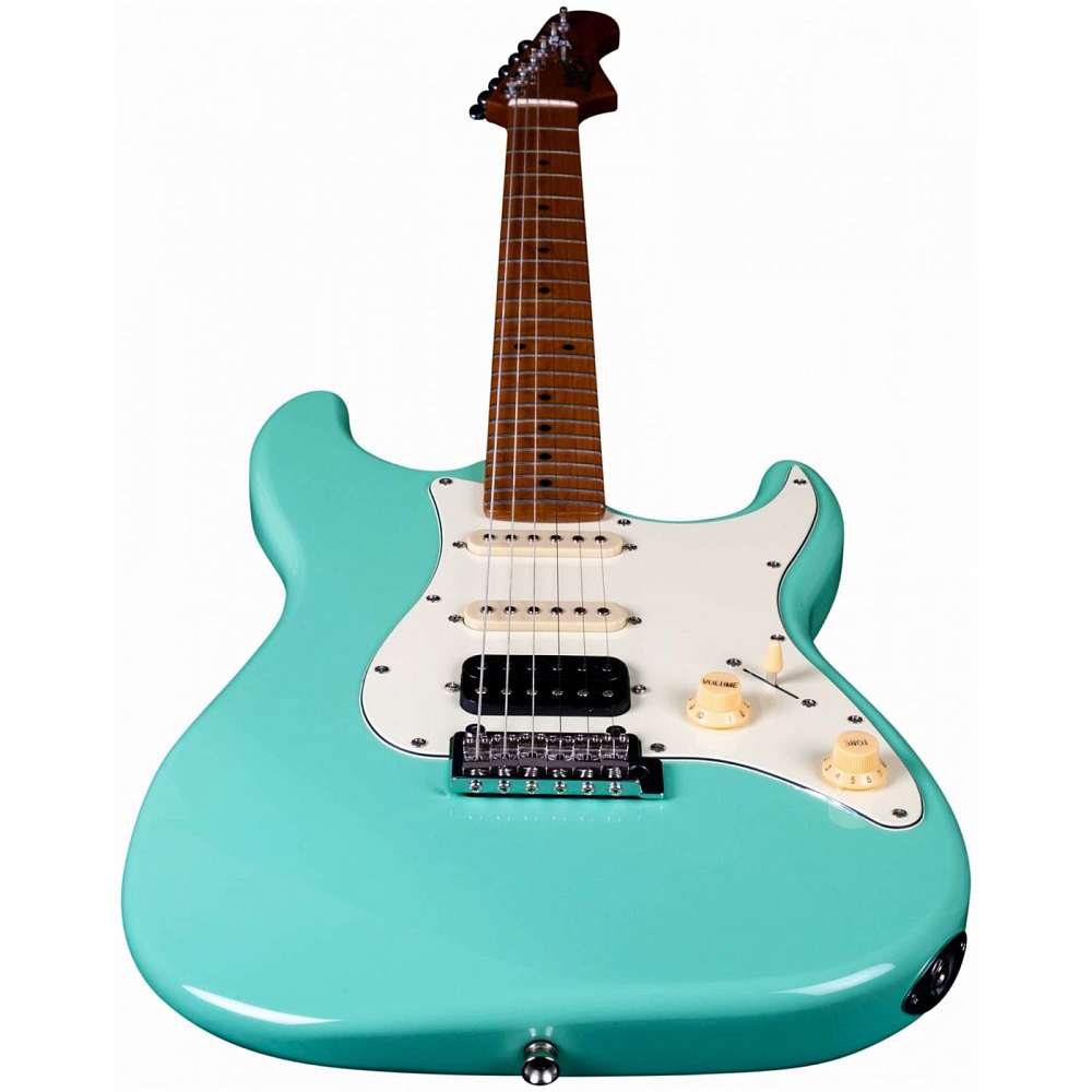 Электрогитара JET JS-400 SFG — электрогитара типа Stratocaster. Корпус из запеченного тополя, 22 лада. Звукосниматели HSS, тремоло. Гриф и накладка из запеченого клена (Roasted Maple). Цвет морской волны (Seafoam Green). Профиль грифа Modern C.