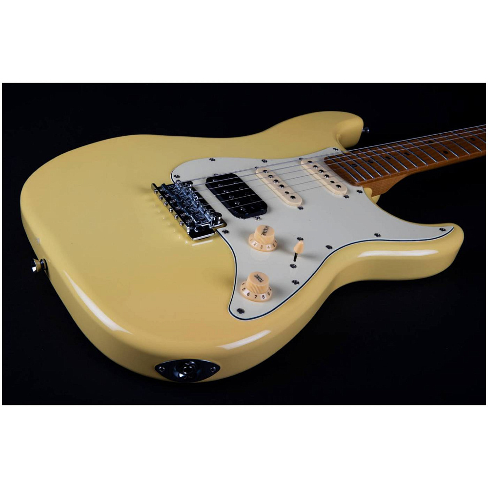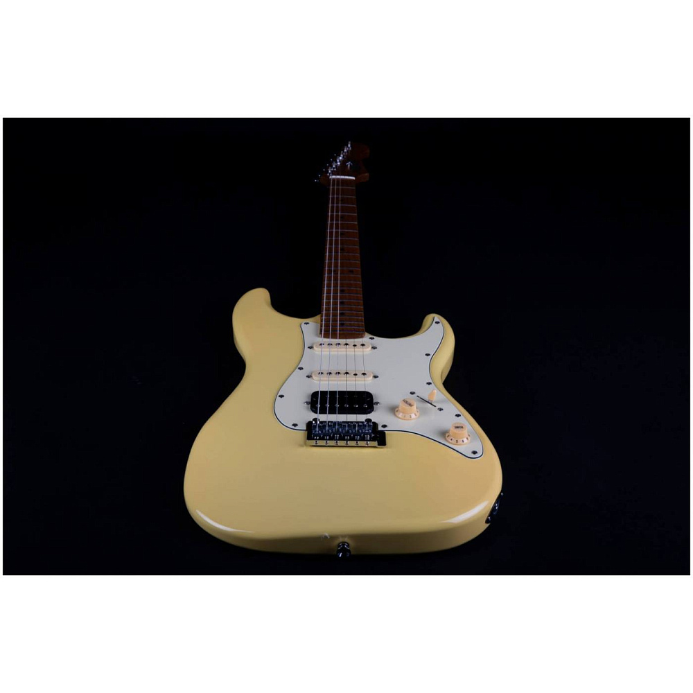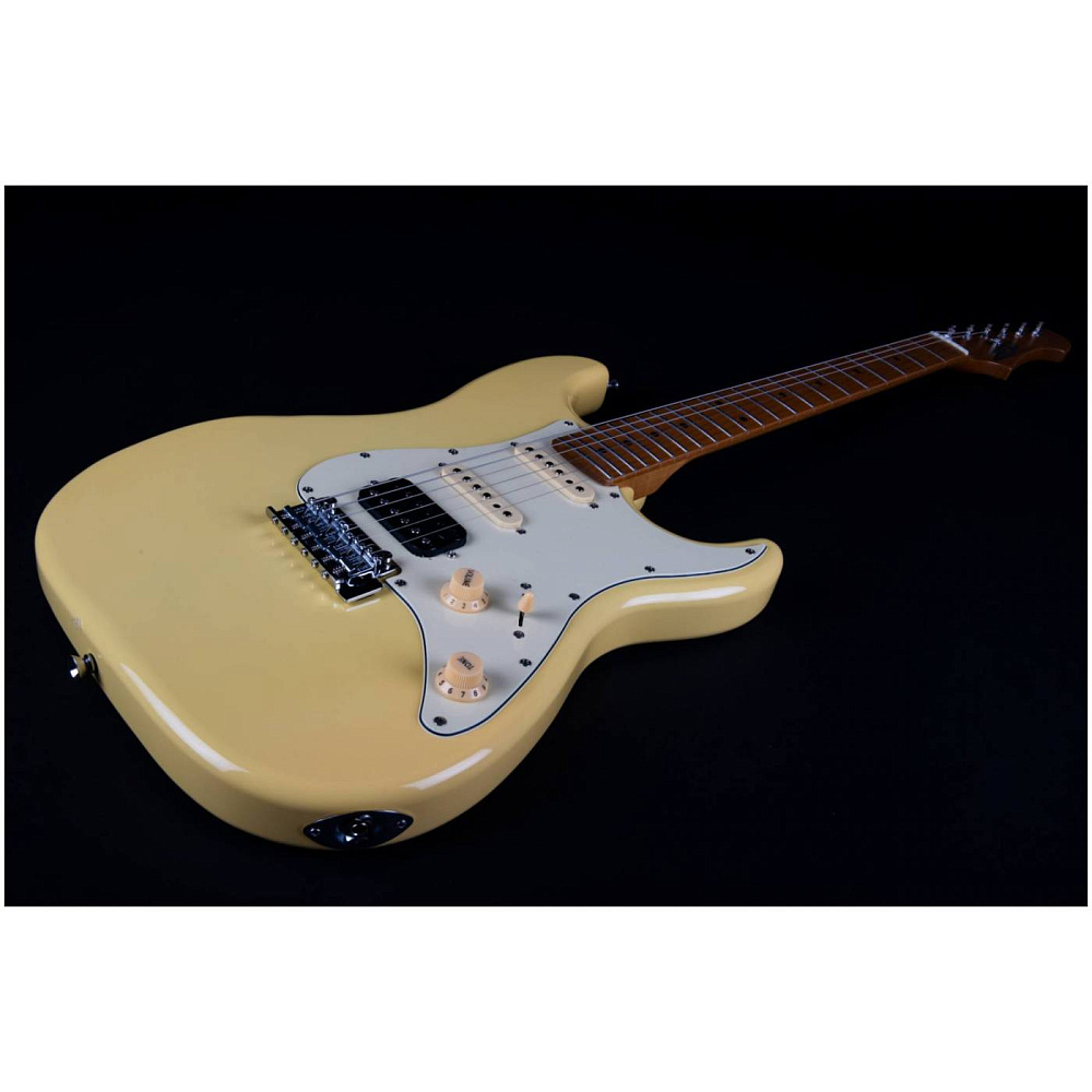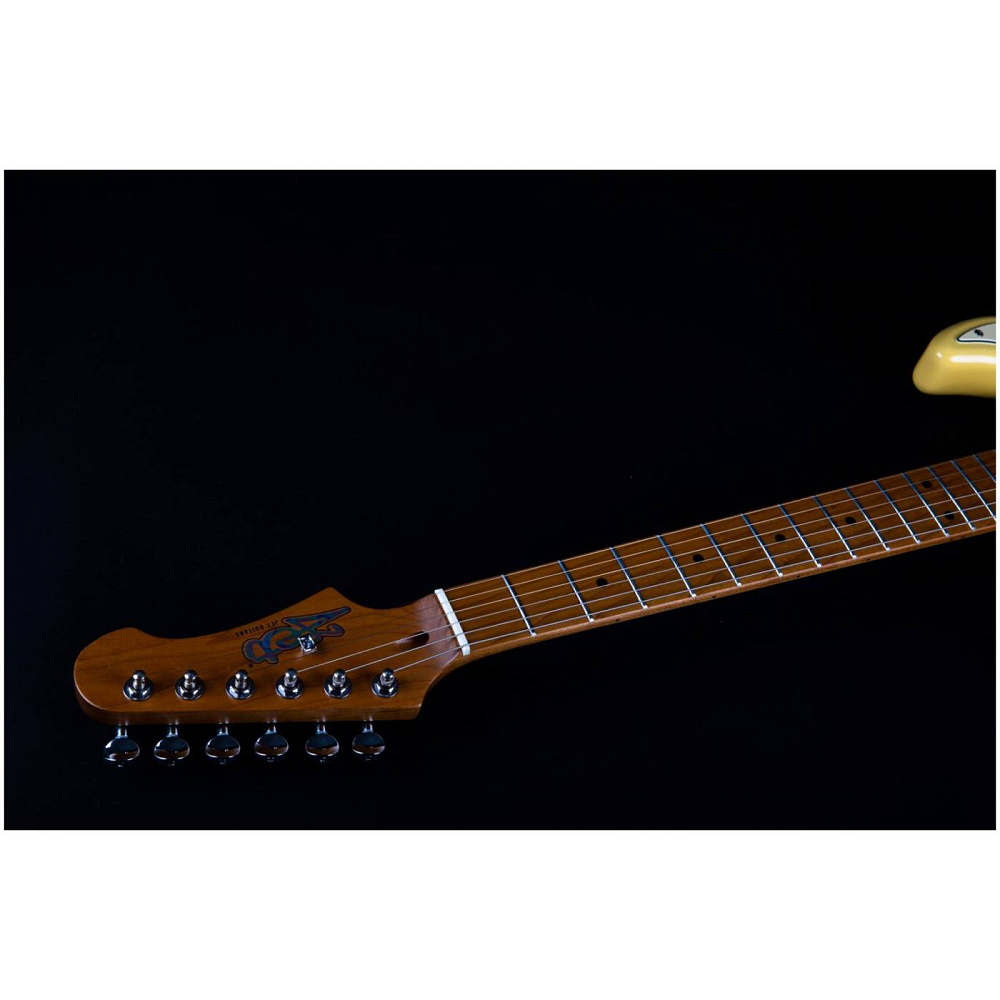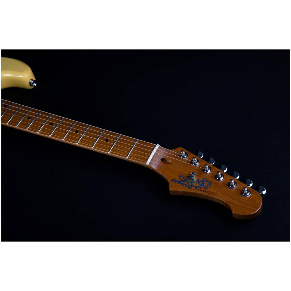 Электрогитара JET JS-400 VYW — электрогитара типа Stratocaster. Корпус из запеченного тополя, 22 лада. Звукосниматели HSS, тремоло. Гриф и накладка из запеченого клена (Roasted Maple). Цвет винтажный желтый (Vintage Yellow). Профиль грифа Modern C.