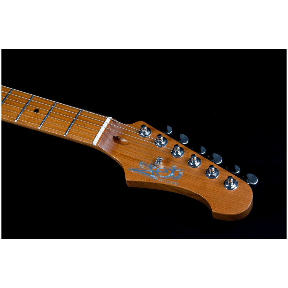 Электрогитара JET JS-450 OBL — электрогитара типа Stratocaster. Корпус из запеченного тополя с топом из огненного клена. Гриф из канадского запеченного клена. Звукосниматели HSS Ceramic. Тремоло. Цвет Ocean Blue. Профиль грифа Modern C.