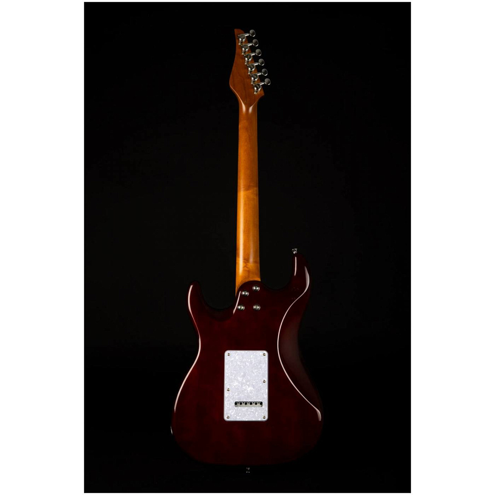 Электрогитара JET JS-450 QTBR — электрогитара типа Stratocaster. Корпус из тополя с топом из тигрового клена. Звукосниматели HSS. Гриф из запеченого клена (Roasted Maple), накладка из палисандра (R). Цвет прозрачный коричневый (Transparent Brown).