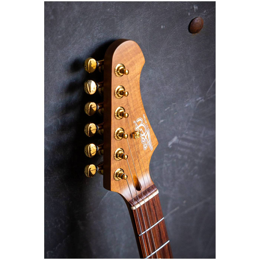 Электрогитара JET JS-480 WR G — классический стратокастер для музыкантов любого уровня. Корпус из запечённого тополя, гриф из канадского печёного клена (roasted maple) и накладка из палисандра обеспечивают стабильность и комфорт игры. Конфигурация звукоснимателей HSS Alnico V, тремоло и золотая фурнитура — для универсального и выразительного звука.