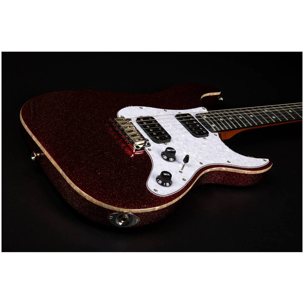 Серия 500 – c двумя хамбакерами для тех, кто ищет более тяжелый, жесткий звук. Накладка на гриф выполнена из черного дерева. А отделка корпуса в прямом смысле блестящая, этот инструмент просто светится в руках.