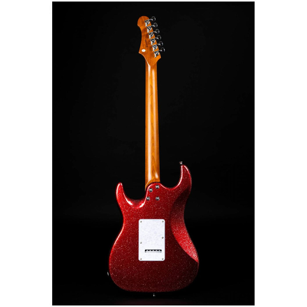 Электрогитара JET JS-500 RDS — электрогитара типа Stratocaster. Корпус из липы, 24 лада. Звукосниматели HH, тремоло. Накладка из черного дерева. Цвет красный с блестками (Red Sparkle). Профиль грифа Modern C. Для тяжелого звучания.