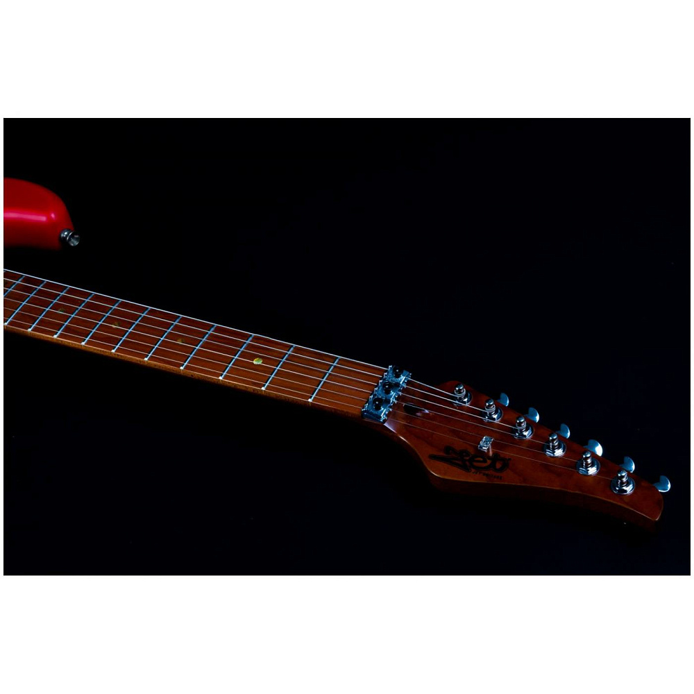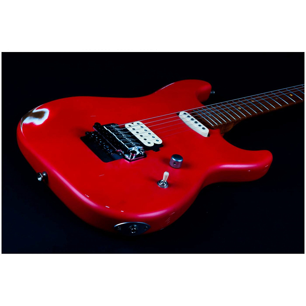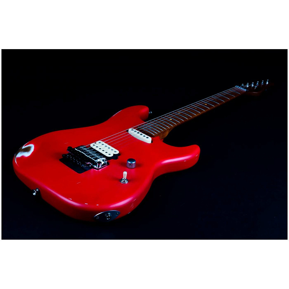 Электрогитара JET JS-850 Relic FR — электрогитара типа Stratocaster. Корпус из ольхи, 22 лада. Звукосниматели HS. Гриф и накладка из запеченого клена (Roasted Maple). Цвет состаренный красный (Relic FR). Профиль грифа Modern C. Винтажный стиль.