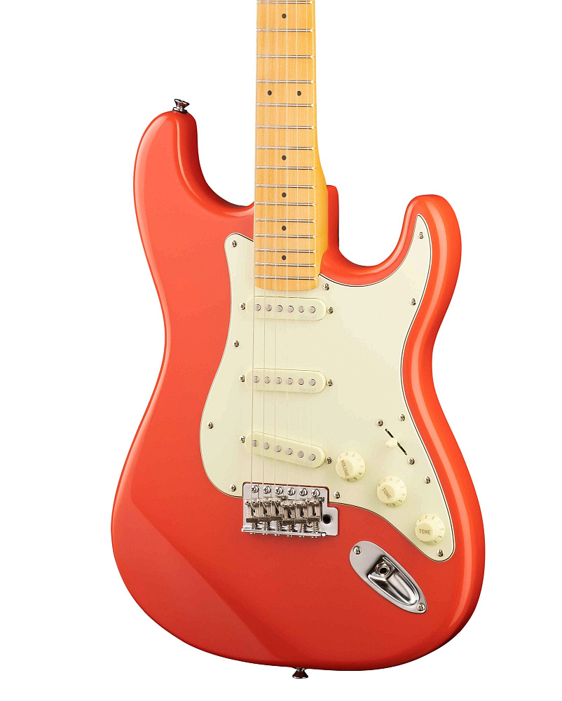 Электрогитара Prodipe ST80MA в цвете Fiesta Red. Модель Stratocaster с корпусом из липы и кленовым грифом (радиус 9.5"). Три сингла Alnico V для безупречной универсальности. Винтажный стиль и отличная проекция звука.