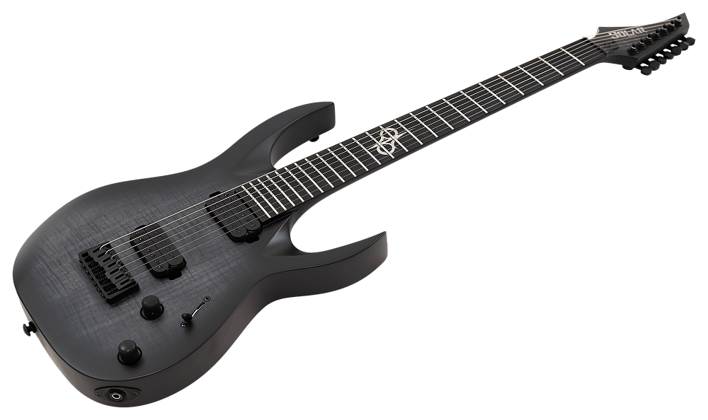 Электрогитара семиструнная Solar A2.7FBB+ — семиструнная гитара для экстремальных стилей. Звукосниматели Duncan Solar+ (Alnico VIII) для максимальной атаки. Корпус из красного дерева с топом из пламенного клена, гриф из печеного клена. Матовая черная отделка. Расширенная мензура 26,5 дюйма.