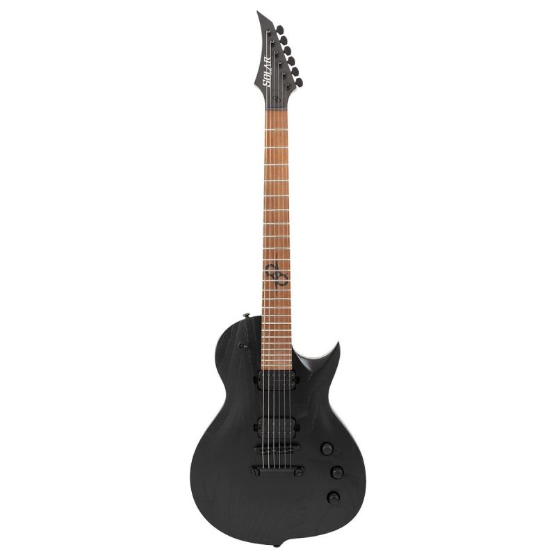 Электрогитара Solar GC2.6BOP+ — электрогитара в стиле Les Paul. Корпус из сунгкая, гриф из печеного клена, накладка из печеного клена. Звукосниматели HH, бридж Tune-O-Matic. Матовая черная отделка с открытыми порами. Классический дизайн с современной начинкой.
