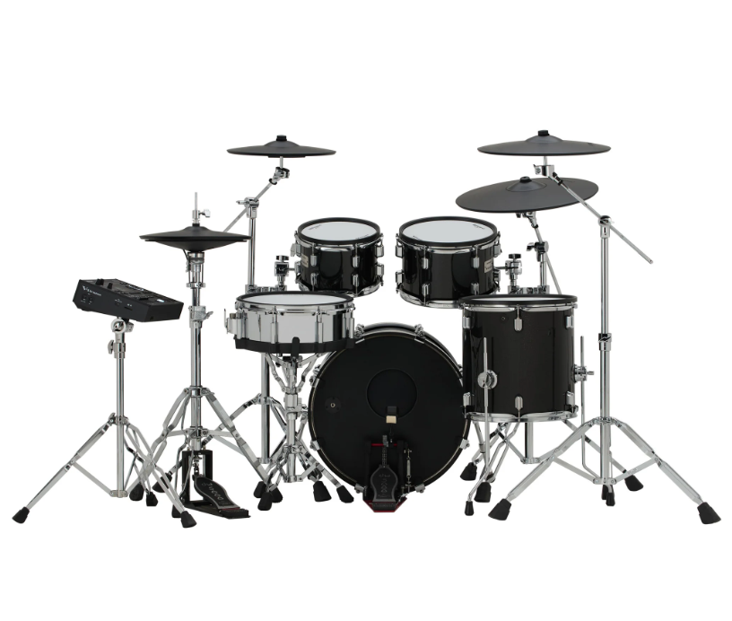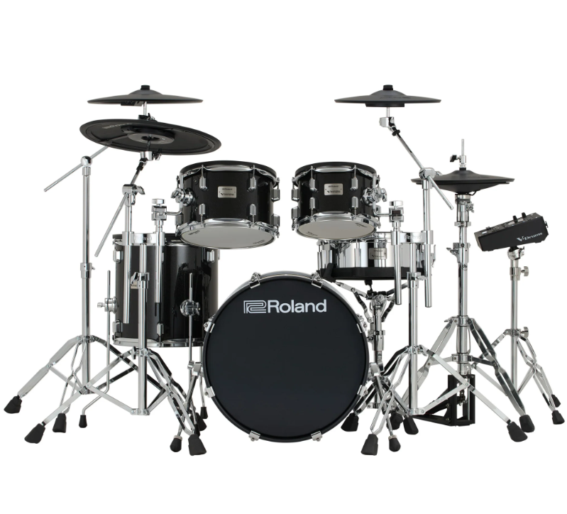 Электронная ударная установка Roland VAD516 KIT — профессиональная электронная установка премиум-серии V-Drums Acoustic Design. Воссоздает внешний вид, ощущение и размеры акустической установки с томами 10″, 12″, 14″ и напольным томом 16″. Барабаны имеют настоящие деревянные корпуса и двойные пэды для реалистичной игры. Мозгом системы слуствует модуль TD-50X или TD-27, предлагающий передовые цифровые модели звучания (Prismatic Sound Modeling). Для сцены и студии.