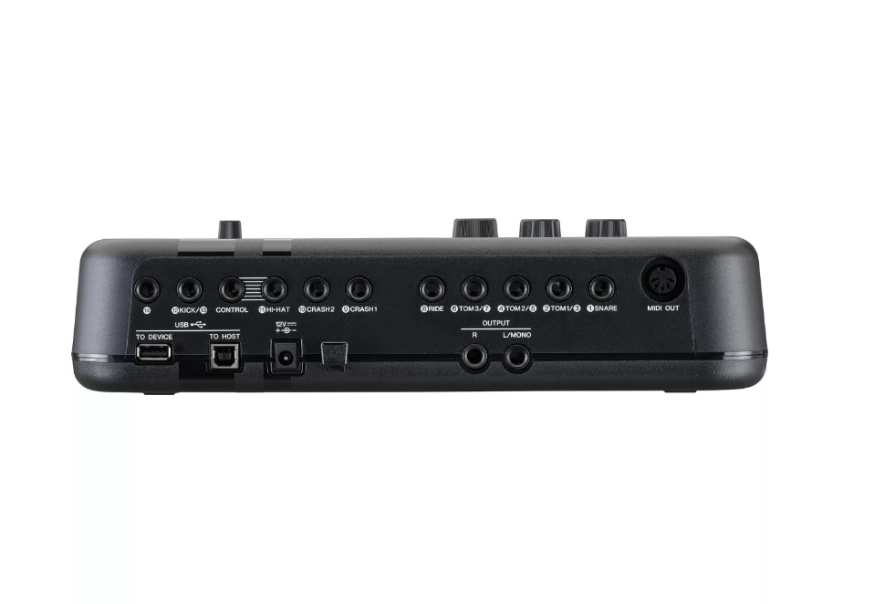 - Входы для триггеров: Триггерные разъемы 1, 14: Standard stereo phone, L: Trigger, R: Rim switch / Trigger. Триггерные разъемы 2/3, 4/5, 6/7, 12/13: Standard stereo phone, L: Trigger, R: Trigger. Триггерные разъемы 8, 9, 10, 11: Standard stereo phone, L: Trigger, R: Rim switch.