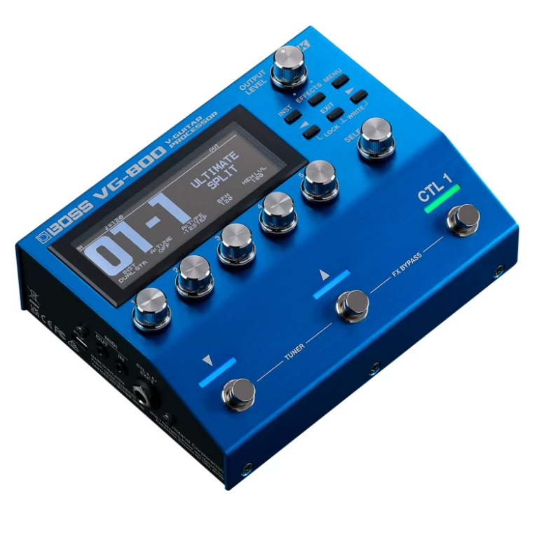 Процессор эффектов Boss VG-800 — гитарный процессор для расширенного моделирования и синтеза. Совместим с раздельными звукоснимателями GK, позволяет создавать альтернативные строит и управлять высотой тона отдельных струн. Оснащён функцией Guitar-to-MIDI, петлей эффектов и поддержкой приложения Boss Tone Studio.