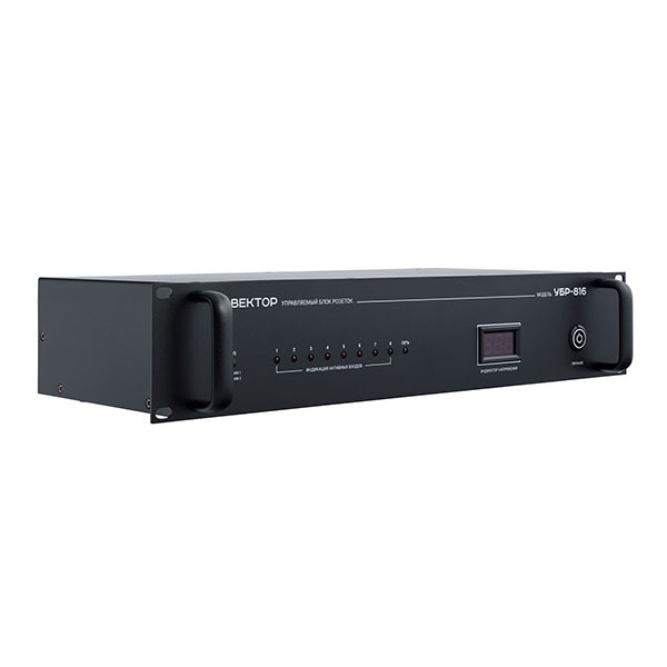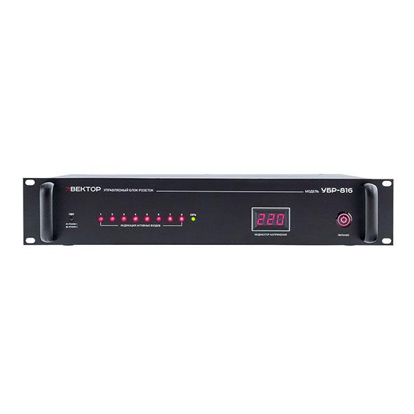 Блок питания Вектор УБР-816 — управляемый блок на 8 розеток для автоматического отключения питания по сигналу ОПС (охраны, пожарной сигнализации). Электронный вольтметр, светодиодная индикация. Функция секвенсора для поочередной подачи напряжения на розетки. Интервал включения 0,5 сек. Установка в стойку 19". Идеален для систем трансляции в торговых комплексах.