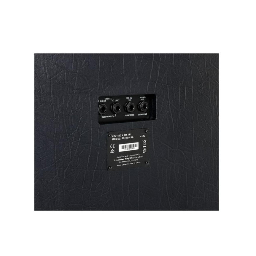 Кабинет гитарный Blackstar HT-Venue HTV-412A MK III — профессиональный кабинет 4x12" косого формата. Мощность 320Вт, динамики Celestion. Подключение: 4/16 Ом моно или 2х8 Ом стерео. Открытая задняя стенка. Надежная конструкция для туров и концертов.