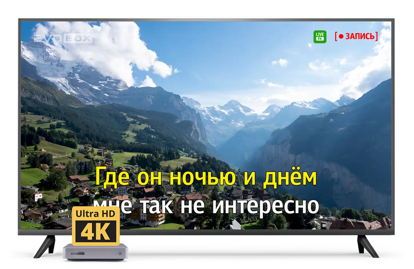 Благодаря поддержке технологии 4K EVOBOX Plus обладает высочайшим качеством изображения. Наслаждайтесь четкими титрами и яркими пейзажами во время выступления.