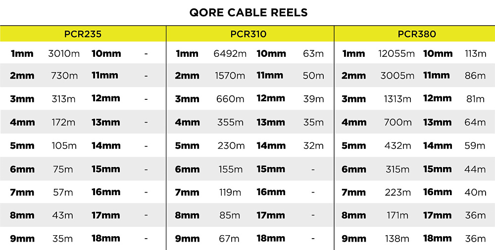 Катушка QORE PCR235 — пластиковая противоударная катушка для кабеля. Внешний диаметр барабана 235 мм. Для кабеля диаметром 3.00-10.00 мм. Оснащена ручкой, тормозом, внешним держателем. Легкий вес, ударопрочный материал.