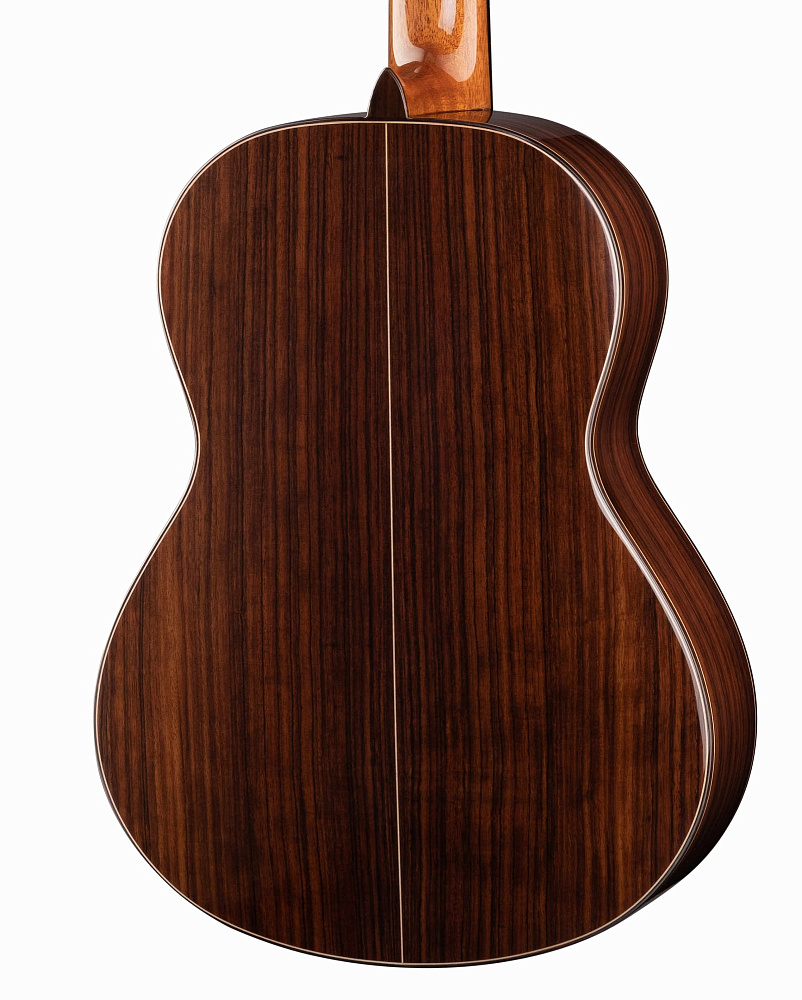 Модель 7C полностью изготовлена вручную из массива кедра и палисандра. Накладка грифа из красивого черного дерева высочайшего качества. Как и у концертных гитар, гриф усилен полосой черного дерева вместо анкерного стержня. Компактный и легкий он позволяет вибрировать всему инструменту от головки грифа до нижней части корпуса. Звучание гитары чистое, насыщенное и чрезвычайно универсальное.