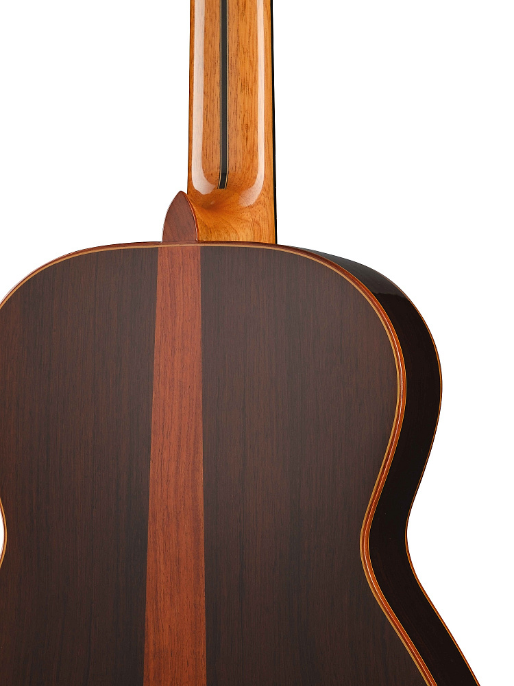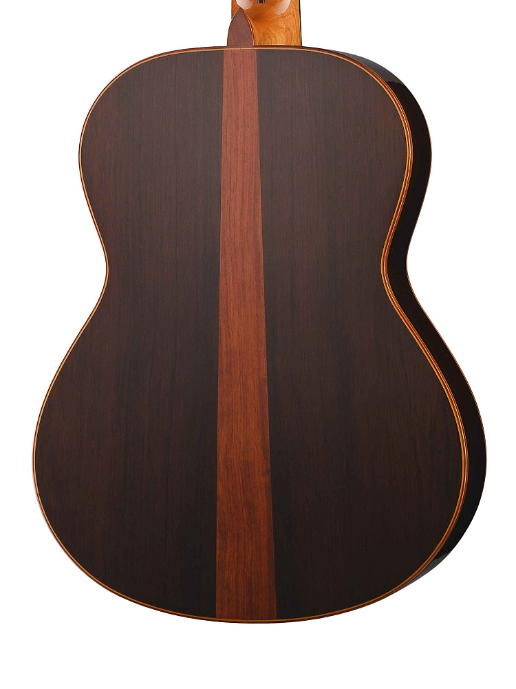 Помимо массива мадагаскарского палисандр для задней деки и обечайки, для создания этого инструмента использовались высококачественная кедровая верхняя дека, колковая механика Schaller Grand Tune Classic Hauser и порожки из кости.