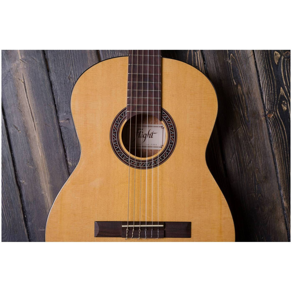 Классическая гитара Flight C-120 NA 4/4 — ученическая гитара с «испанской» формой корпуса. Верхняя дека из ели, корпус из сапеле. Анкерный стержень для регулировки, удобный гриф — отличный выбор для начала обучения детей и взрослых.