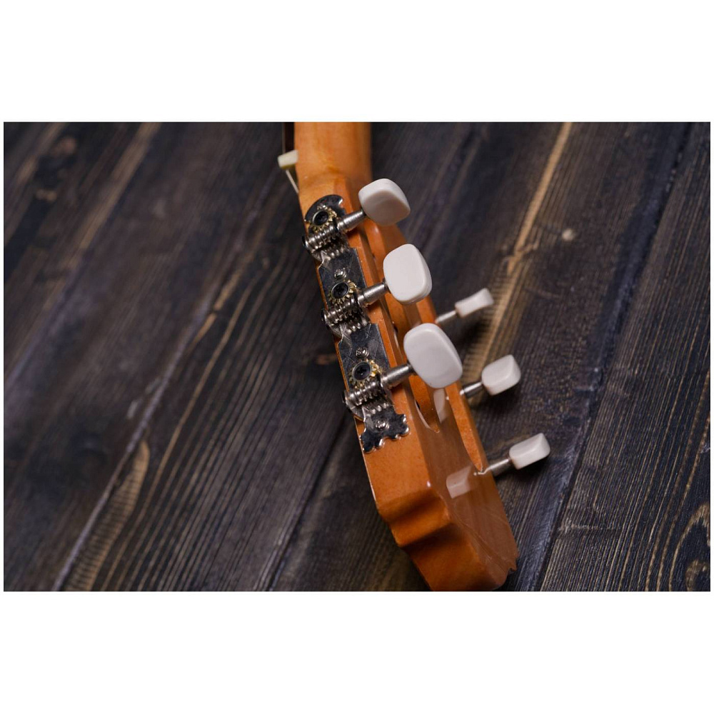 Струны находятся на комфортной для игры высоте в 4 мм. Надежная колковая механика обеспечивает мягкий и точный ход колков, легкость при настройке, а главное - хорошо держит строй.