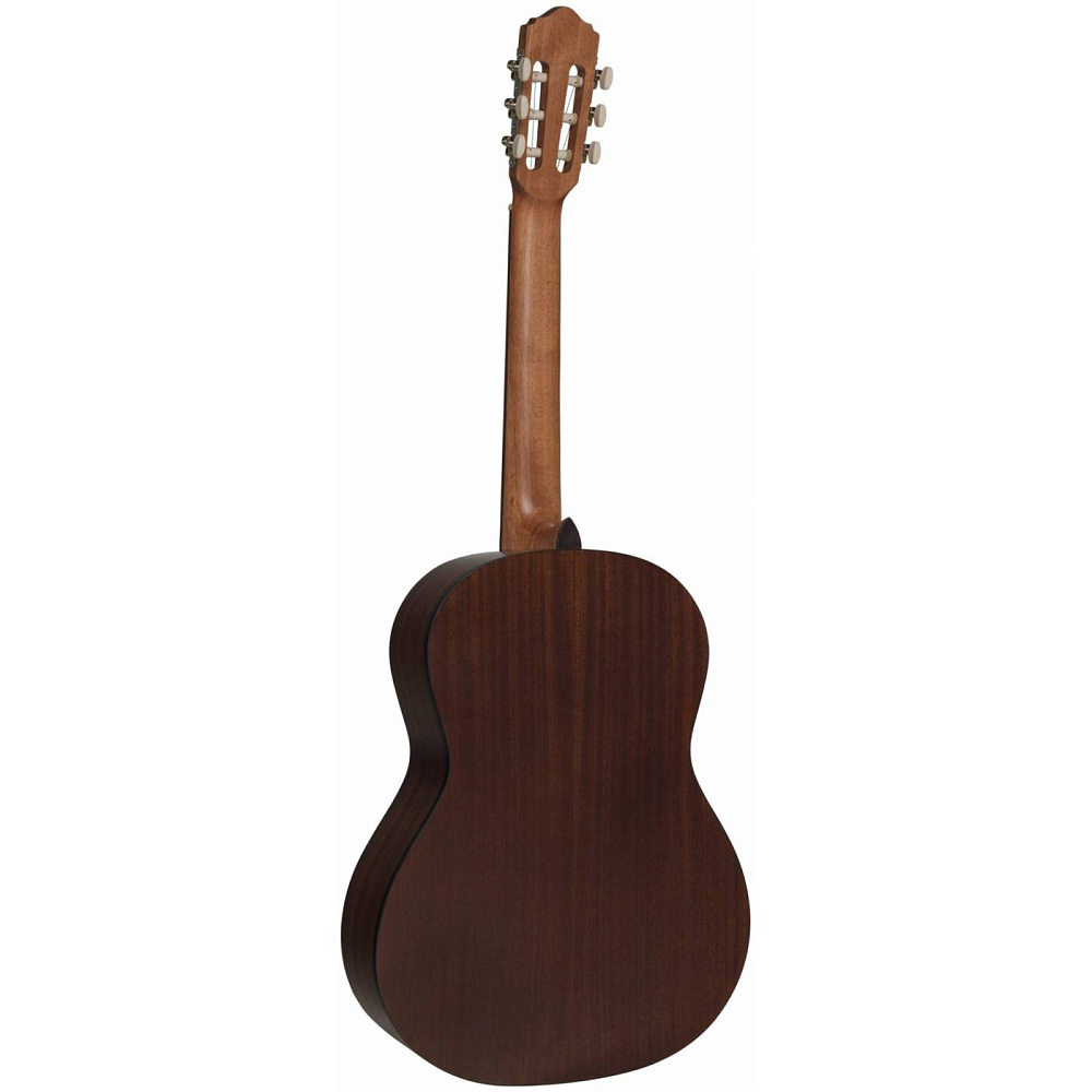 Верхняя дека изготовлена из ели, что обеспечивает чистое звучание, так необходимое для грамотного развития слуха. Нижняя дека и обечайки из сапеле, породы дерева по свойствам очень схожим с красным деревом, благодаря чему звук приобретает мягкость и глубину. Достаточно толстая, порядка 6 мм, накладка на грифе, выполненная из кабукалли, создает в руке ощущение приятной весомости и надежности.