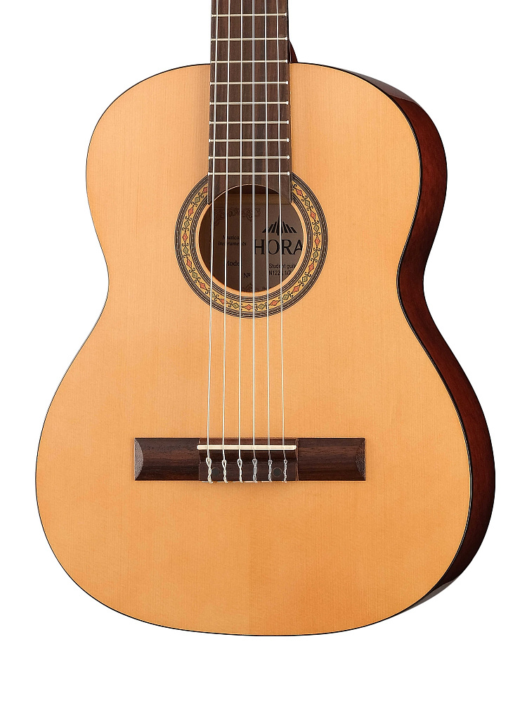 Классическая гитара Hora N1226-1/2 Student — классическая гитара размера 1/2 для детей младшего возраста. Корпус из ламината ели и липы, прочный гриф из клена. Накладка грифа из черного дерева. Легкий и удобный инструмент для начала обучения.