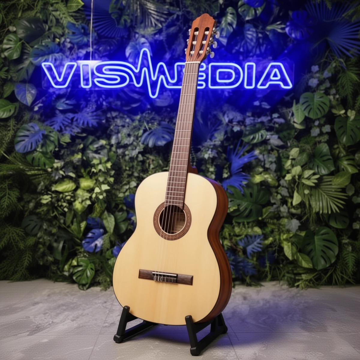 Верхняя дека изготовлена из ели, благодаря чему инструмент имеет резонансное звучание, которое действительно улучшается с годами.
