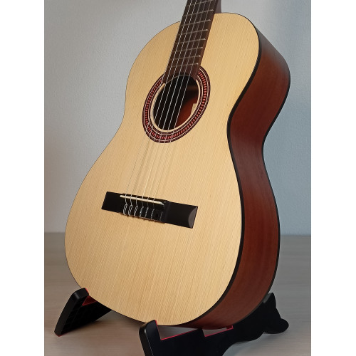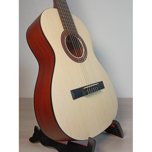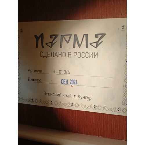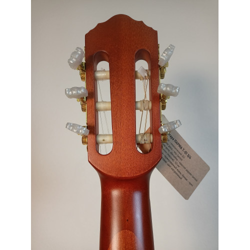 Классическая гитара Парма T-01 3/4 — классическая гитара уменьшенного размера 3/4. Верхняя дека из елового шпона, корпус из красного дерева. Гриф из массива клена, мензура 585 мм, нейлоновые струны. Натуральный матовый цвет. Идеальный выбор для детей от 7-10 лет. Российское производство.