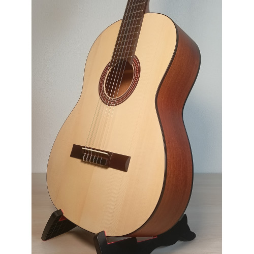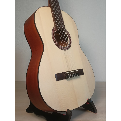 Классическая гитара Парма TR-01 — классическая гитара 4/4 с верхней декой из массива ели. Корпус из шпона красного дерева, гриф из массива клена. Ширина порожка 50 мм, нейлоновые струны. Натуральный матовый цвет. Улучшенное звучание благодаря массивному топу. Качественный отечественный инструмент.