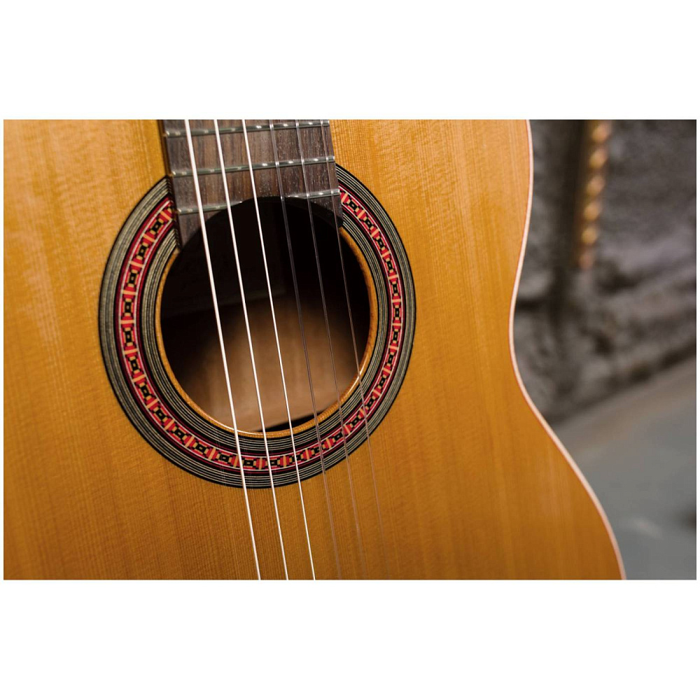 Верхняя дека гитары выполнена из массива кедра. Кедр (наряду с елью) - это традиционная древесина для изготовления качественных профессиональных инструментов. Кедр обладает мягким, глубоким звуком с огромным богатством обертонов.