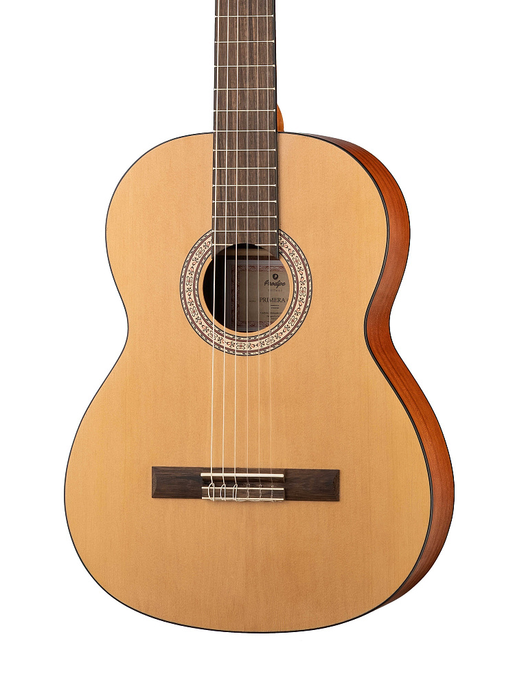 Классическая гитара Prodipe Primera 4/4 — идеальный стартовый инструмент. Верхняя дека из ели, корпус из красного дерева. Гриф с двумя карбоновыми вставками для лёгкости и прочности. Отличная сбалансированность и комфорт для новичков.