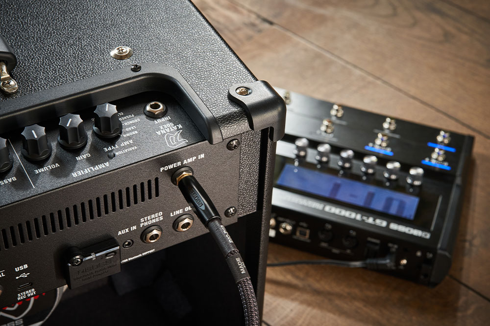 Katana-50 EX Gen 3 вписывается во все ваши творческие путешествия. Легко соедините два усилителя с помощью функции Stereo Expand*, при этом мастер-контроль будет осуществляться с основного усилителя, а стереоэффекты, такие как хорус, задержка и реверберация, будут распределены по обоим усилителям для широкого, захватывающего звучания. Или подключитесь к разъему Power Amp In, чтобы обойти предусилитель Katana и использовать реактивную секцию питания класса AB для усиления моделирующего устройства или внешнего предусилителя.