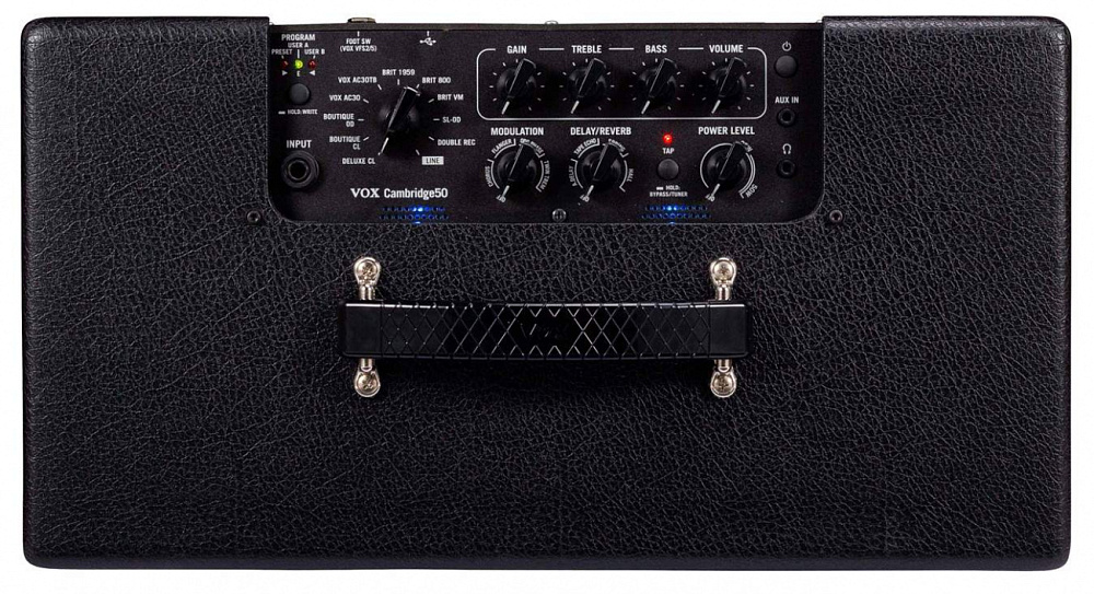- Oткрытая конструкция кабинета с 12” динамиком Celestion VX12