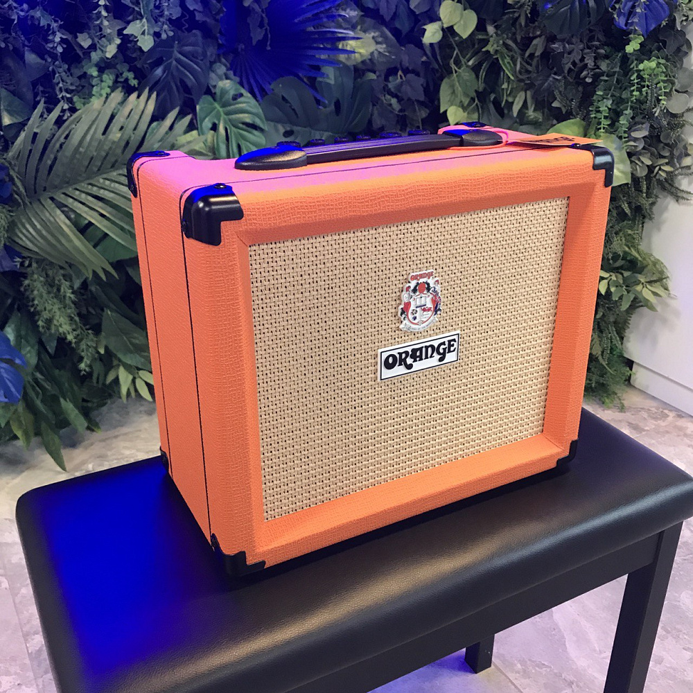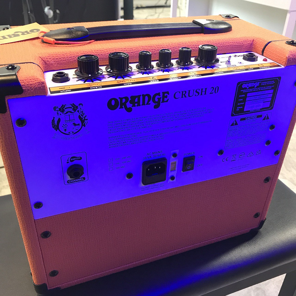 Комбоусилитель Orange Crush 20 — двухканальный аналоговый комбо 20 Вт. Динамик 8" Voice of the World — диапазон от чистого звука до хай-гейна — вход AUX и выход на наушники. Серьезный усилитель для практики и джемов с возможностью подключения футсвитча.