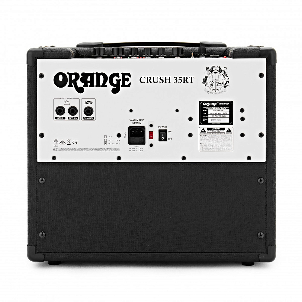 Сrush 35 RT демонстрирует серьезный подход к делу, который не часто встретишь в комбо аналогичного формата. Усилитель имеет два канала, охватывающих полный спектр звука от чистого до хай-гейна, раздельные настройки громкости этих каналов, настройку гейна перегрузки и в дополнение к всему - гнездо под футсвитч для ножного переключения каналов (опция приобретается отдельно). Встроенный ревербератор добавляет объема в звук, а если вам его недостаточно, можно подключить педали эффектов в буферизированную петлю эффектов. Встроенный тюнер позволяет настраивать инструмент без дополнительных аксессуаров.