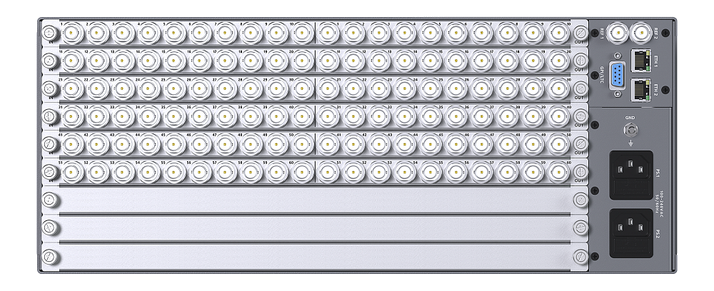 Коммутатор KV-6060HD предназначен для матричной коммутации 3G/HD/SD-SDI видеосигналов. Позволяет подключать любой из 60 выходов к любому из 60 входов, в том числе подключение всех выходов к одному и тому же входу, не нарушая при этом необходимого согласования входов и выходов. Управление коммутатором осуществляется по сети Ethernet (через web-интерфейс) и от внешних панелей управления, коммутатор не имеет собственных органов управления.
